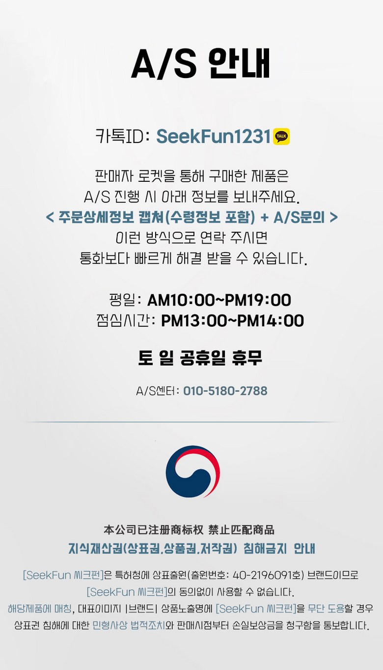 - ㆍ교환/반품에 관한 일반적인 사항은 판매자가 제시사항보다 관계법령이 우선합니다.