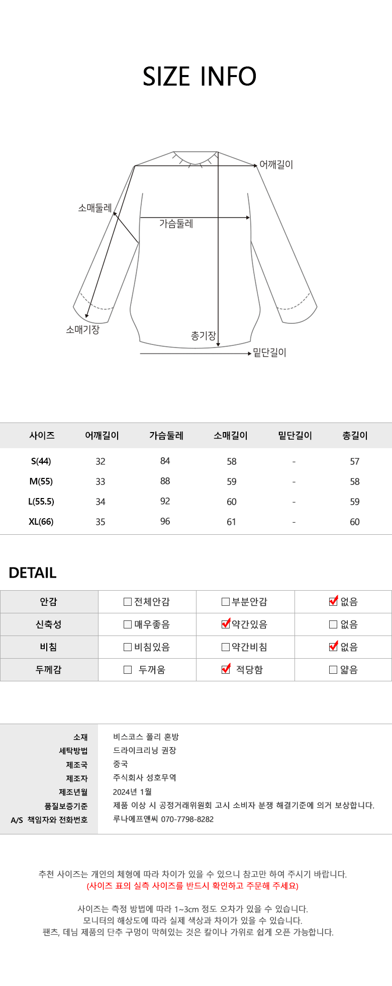 | 치수 | XL | 제조자(수입자) | 주식회사 성호무역 / 업체미제공 |