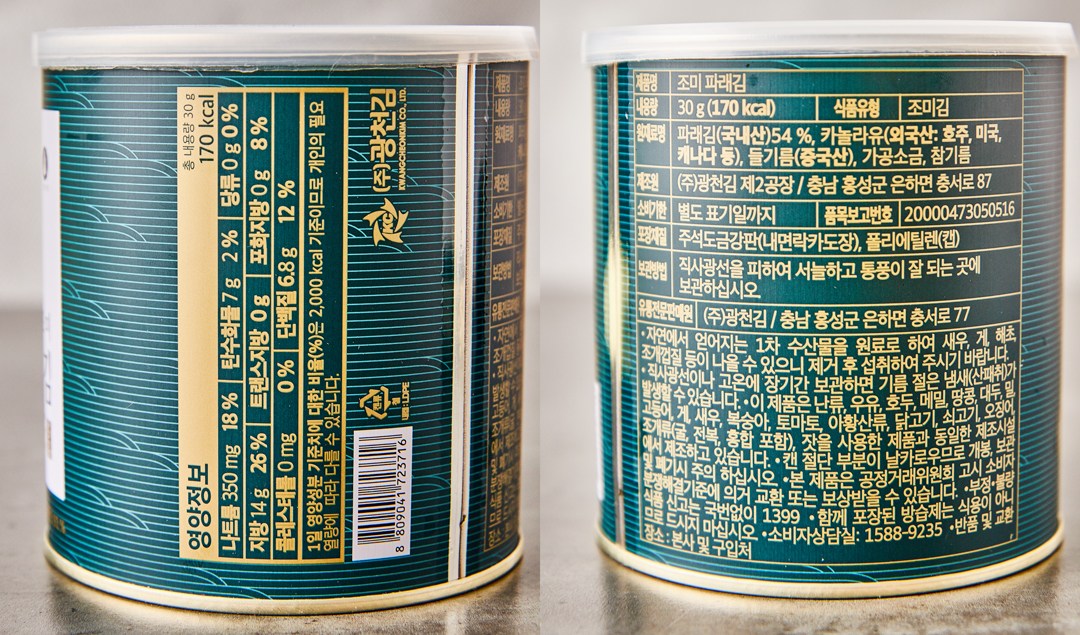 - 김 종류: 파래김