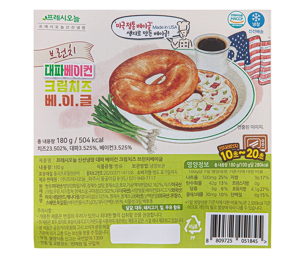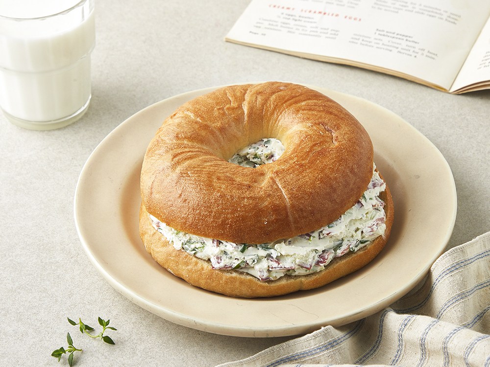 크림치즈 베이글은 맛있지만 자칫 느끼할 수 있는데. 대파와 베이컨을 쏙쏙 넣어, 느끼함은 잡고 고소함은 살렸답니다. 한입 먹으면 달콤하고 짭짤한 풍미가 입안에 가득 퍼질 거예요. 시원한 우유를 곁들이면 더욱 맛있게 먹을 수 있어요.