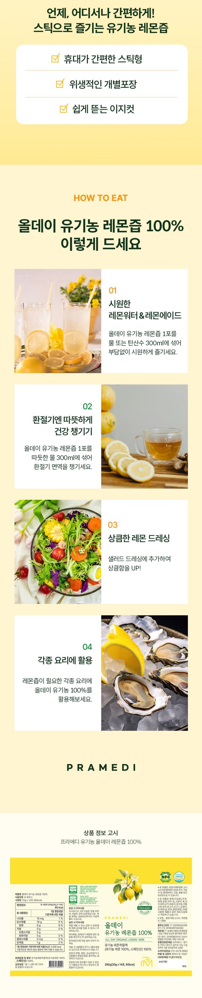 | 제품명 | 프라메디 유기농레몬즙 100% | 식품의 유형 | 과채주스 |
