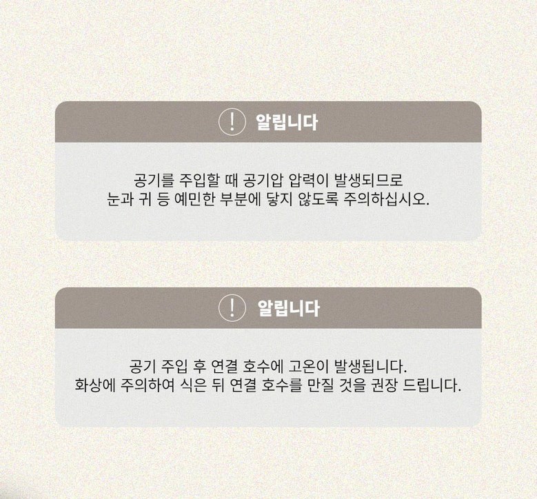 | 교환/반품 신청 기준일 | ㆍ단순변심에 의한 교환/반품은 제품 수령 후 7일 이내까지, 교환/반품 제한사항에 해당하지 않는 경우에만 가능 (배송비용과 교환/반품 비용 왕복배송비 고객부담) ㆍ상품의 내용이 표시·광고의 내용과 다른 경우에는 상품을 수령한 날부터 3개월 이내, 그 사실을 안 날 또는 알 수 있었던 날부터 |