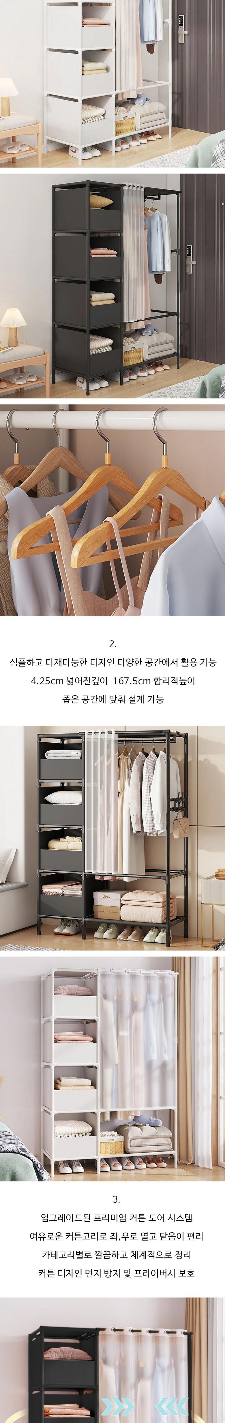 유판 조립식 커튼 스텐드 행거 수납장 옷장
