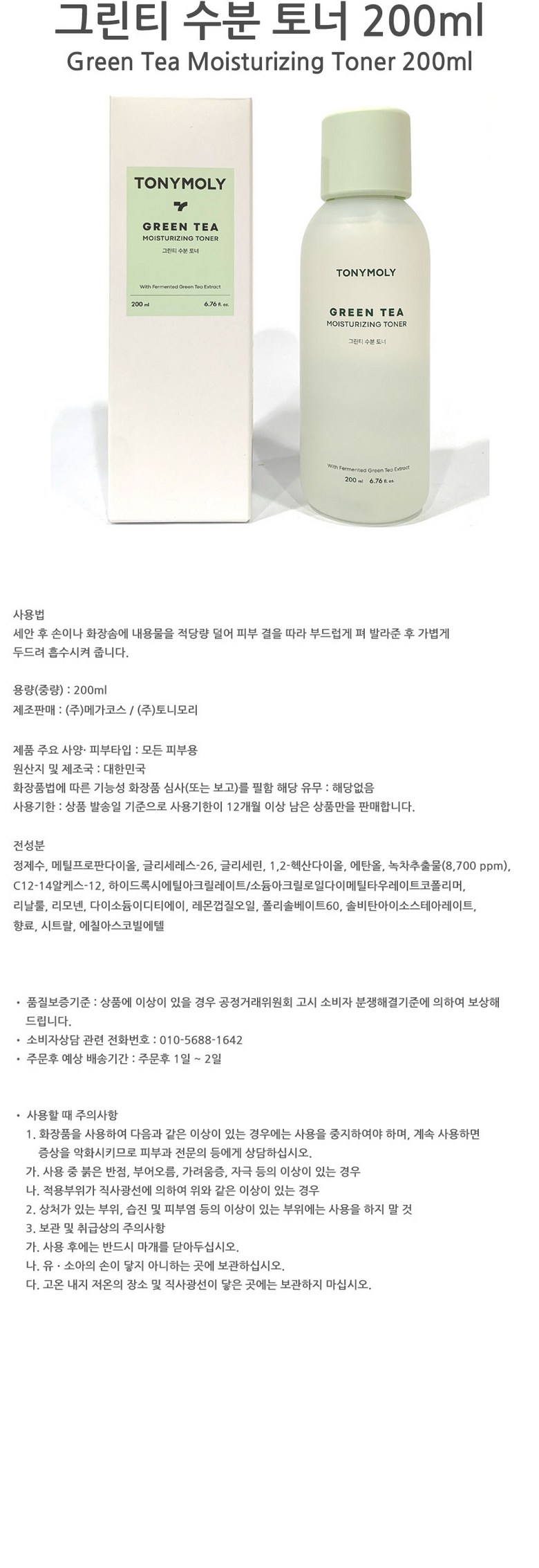 더 촉촉 그린티 수분 스킨 180ml 가 그린티 수분 토너 200ml 로 리뉴얼 되었어요