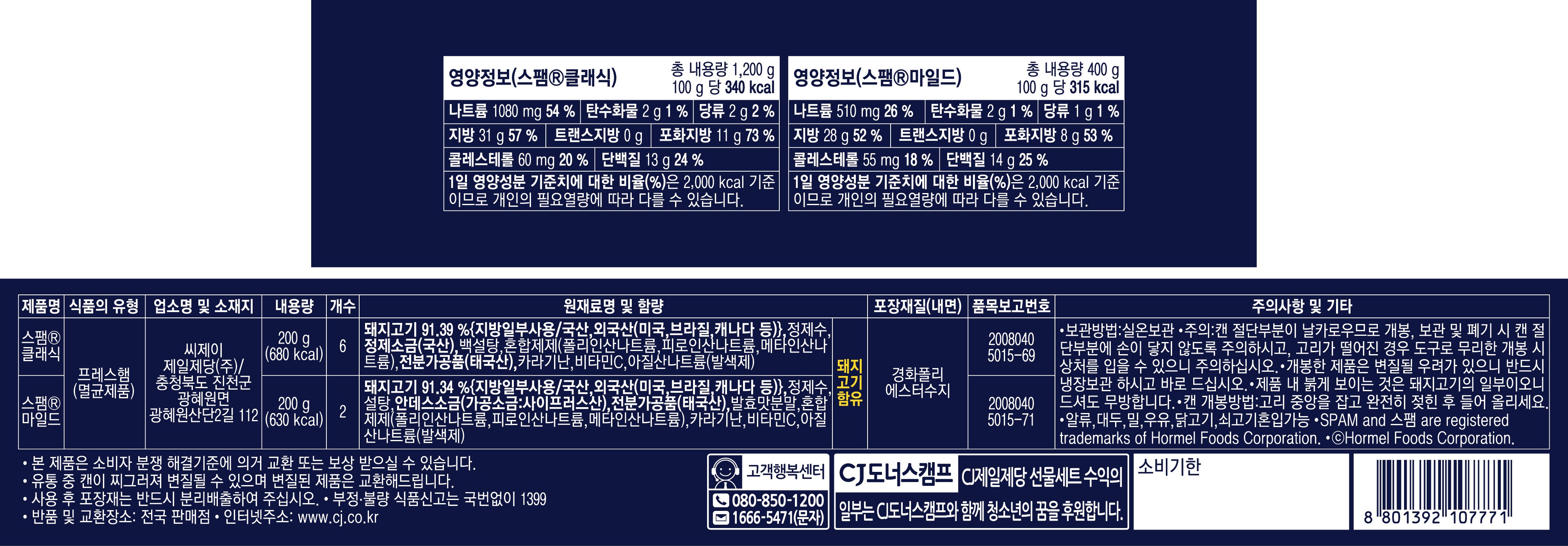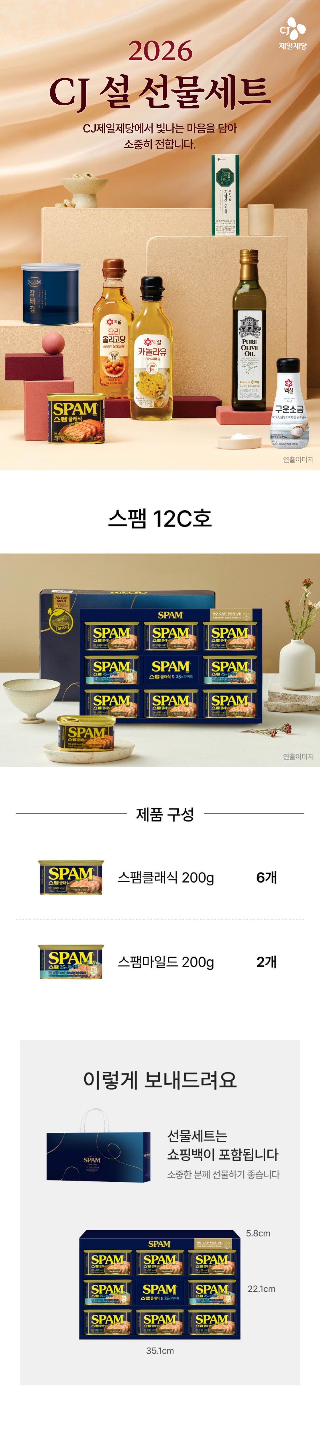 - 구성품: 스팸클래식 200g(6p) + 스팸마일드 200g(2p) + 쇼핑백