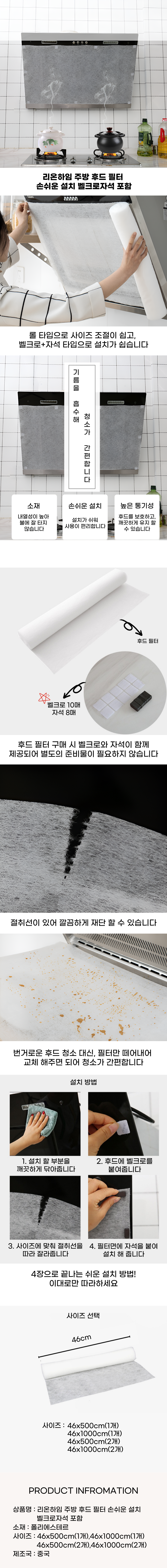 | 품명 및 모델명 | 리온하임 주방 후드 필터 손쉬운 설치 벨크로자석 포함 46*500cm 2개 | 재질 | 컨텐츠 참조 |
