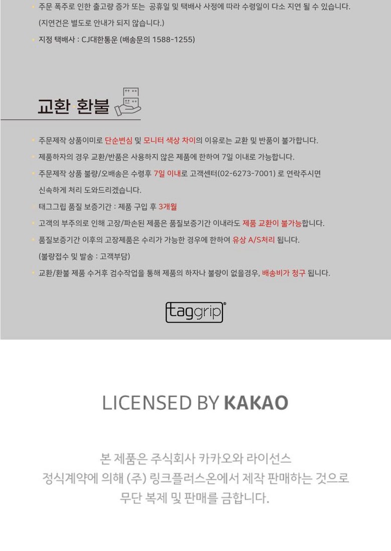 - ㆍ모니터 해상도의 차이로 인해 색상이나 이미지가 실제와 달라, 고객이 단순 변심으로 교환/반품을 무료로 요청하는 경우