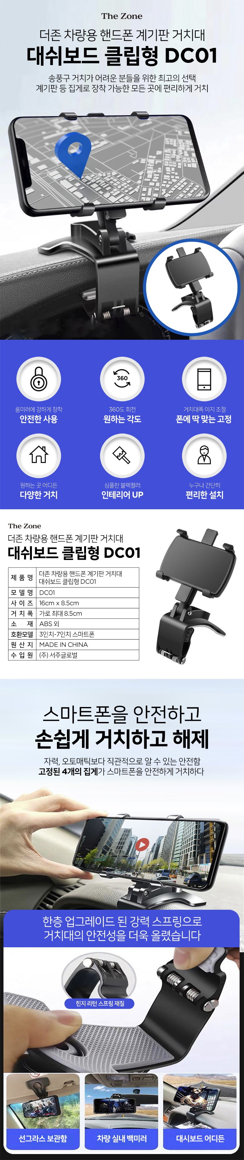 | 품명 및 모델명 | 더존 차량용 핸드폰 계기판 거치대 대쉬보드 클립형 DC01 블랙 1세트 | 동일모델 출시년월 | 업체미제공 |