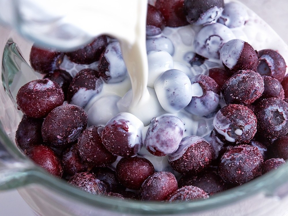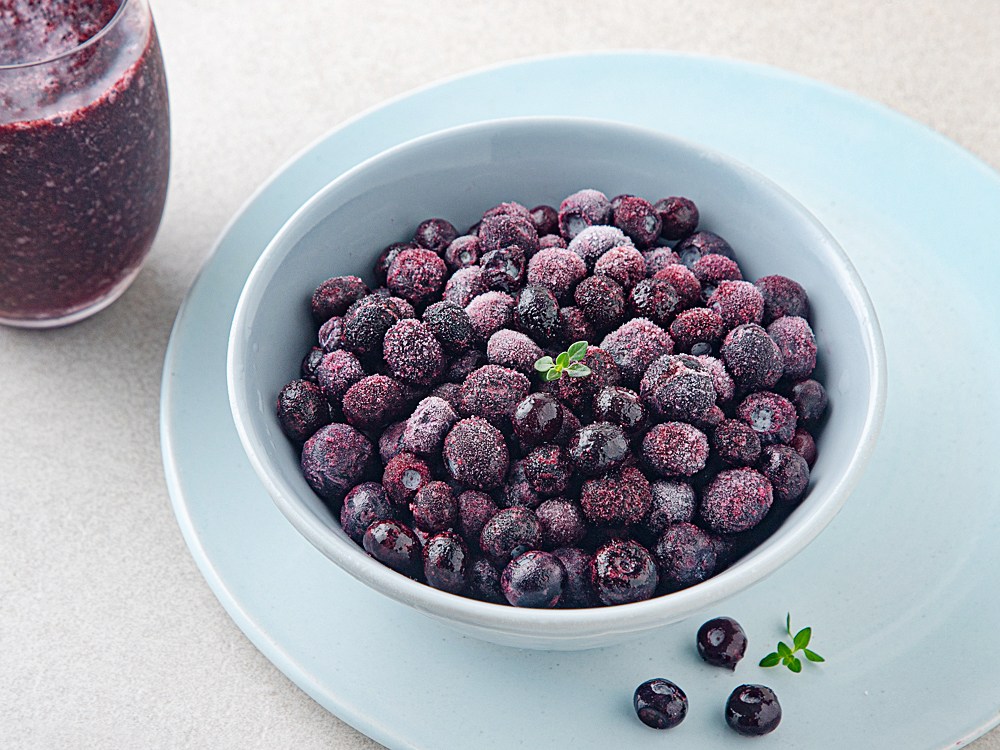 냉동 과일은 구비해놓으면 다채롭게 활용하기 좋지요. 산뜻한 블루베리도 냉동실에 넣어놓고 즐겨보세요. 알알이 영근 상큼함이 입안에서 톡톡 터진답니다. 해동 시간을 줄이면, 사각사각한 셔벳처럼 즐길 수도 있어요.