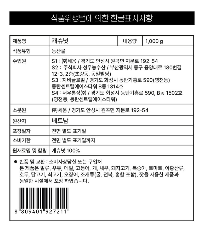 | 제조연월일, 소비기한 또는 품질유지기한 | 상품 상세페이지 참조 | 세부 품목군별 표시사항 | 상품 상세페이지 참조 |