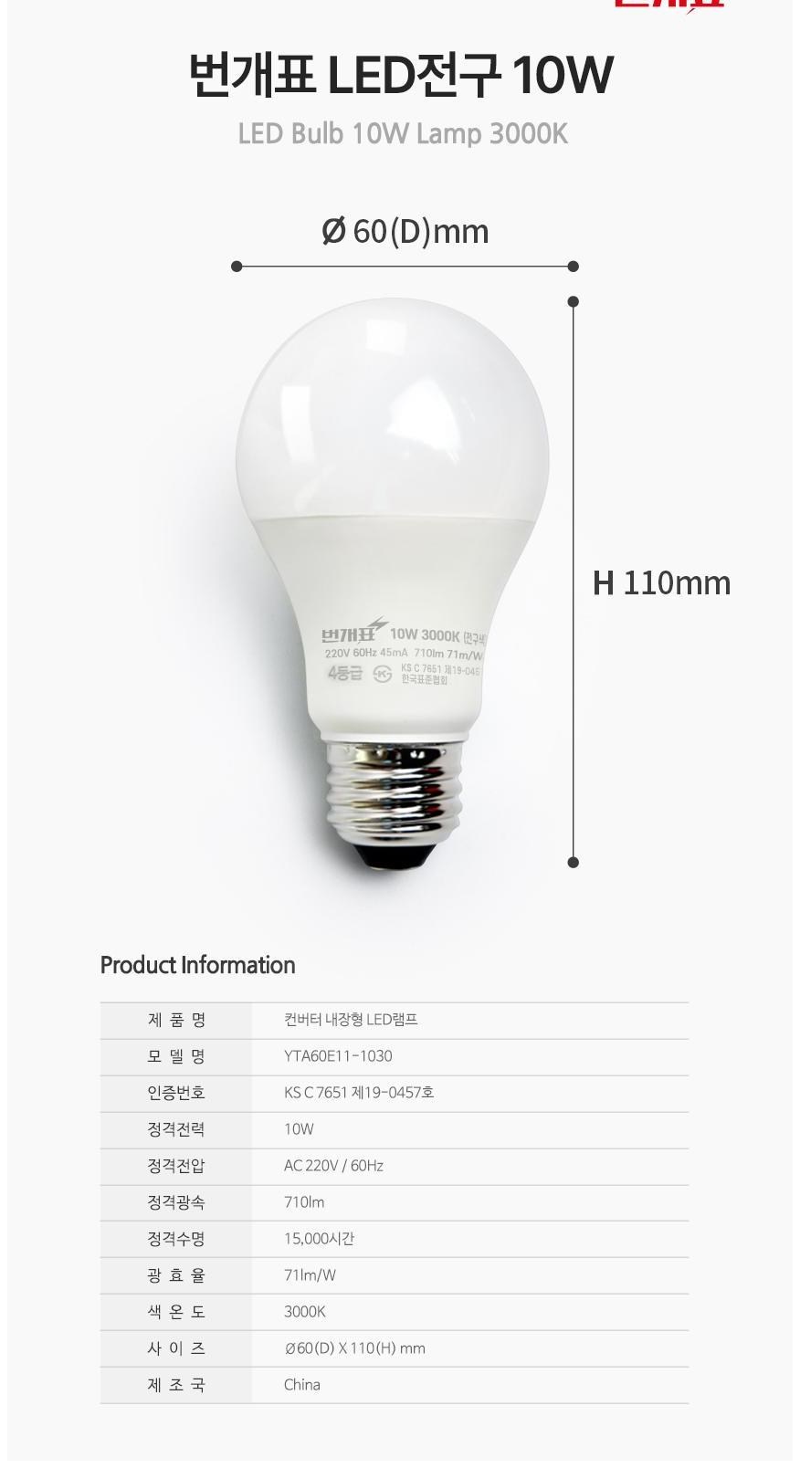 | 품명 및 모델명 | LED Bulbs / YTA60E11-1030 | KC 인증정보 | R-R-ZYL-YTA70E4-142665, KS C 7651 제 19-0457 |