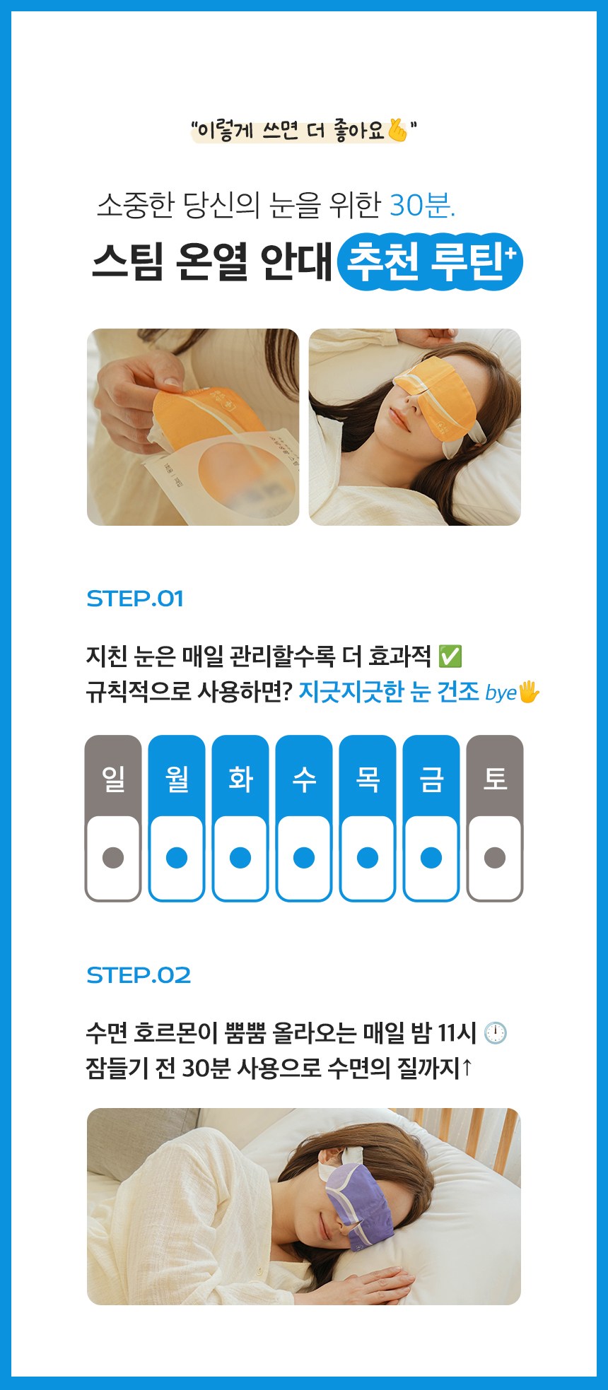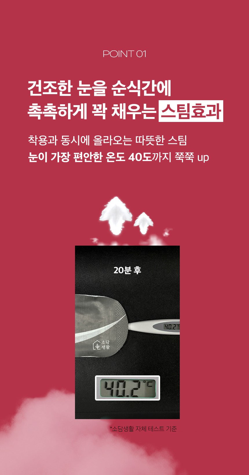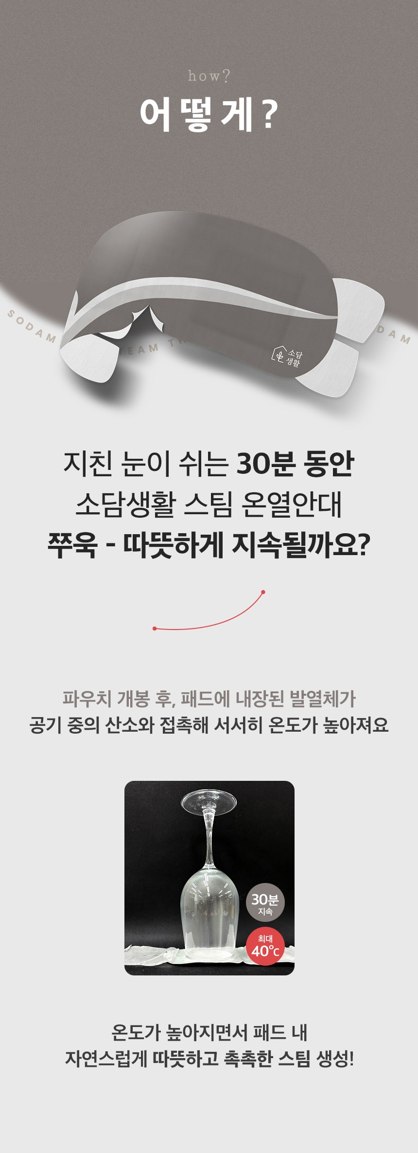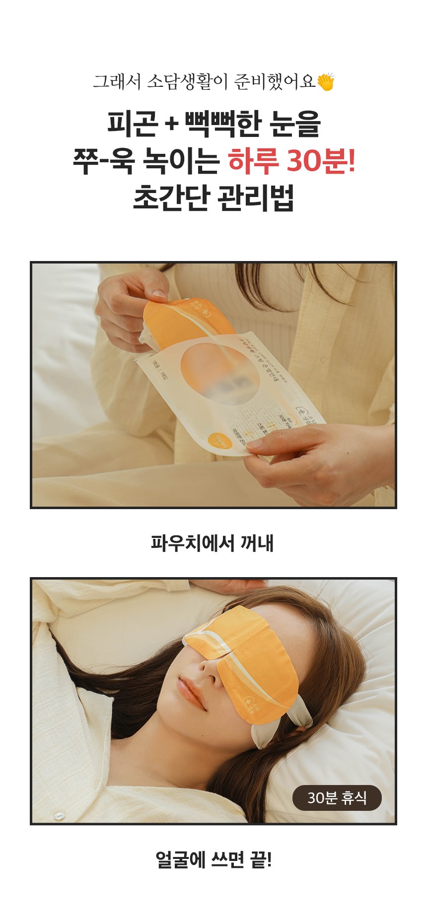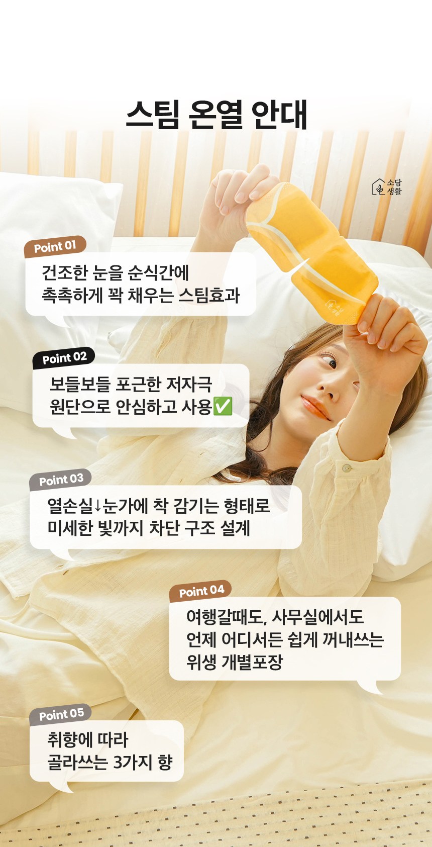 | 품명 및 모델명 | 소담생활 스팀 온열안대 캐모마일향 | 인증/허가 사항 | 해당없음 |