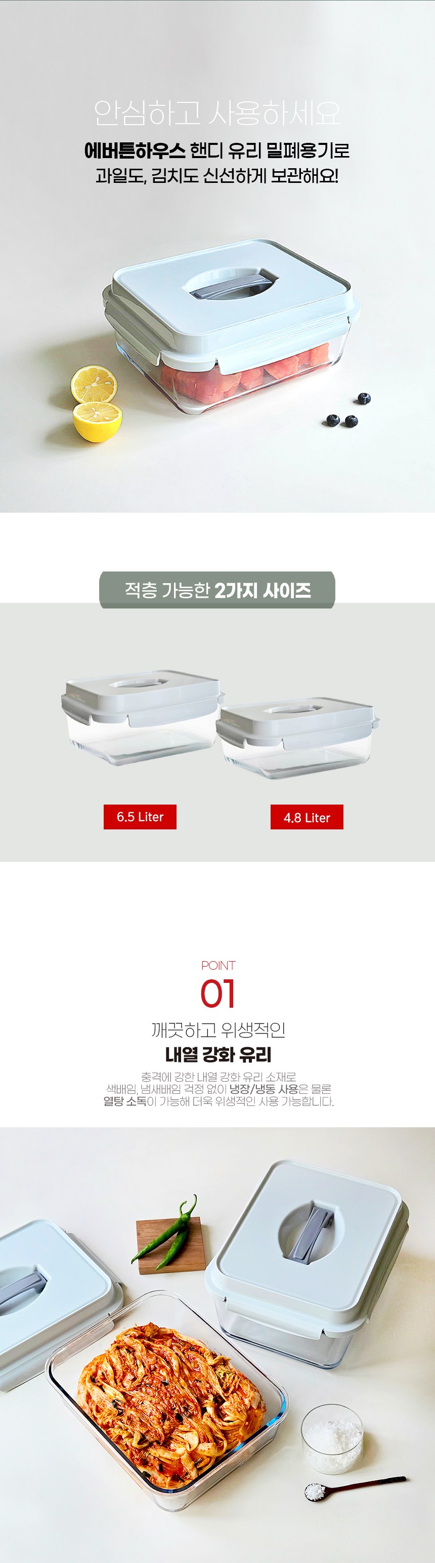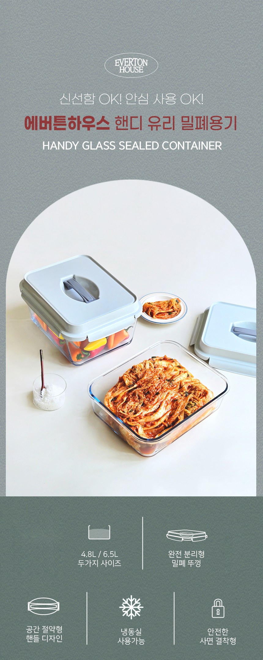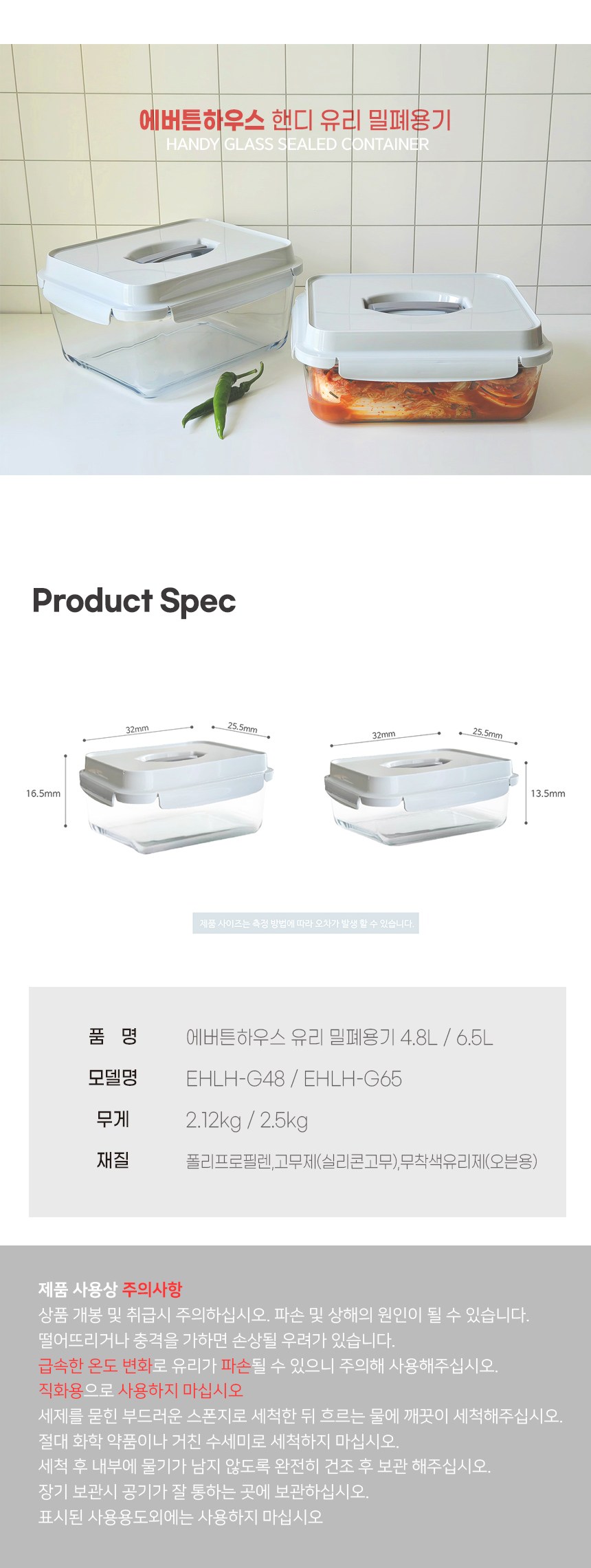 에버튼하우스 핸디 유리 밀폐용기 4800ml EHLH-G48, 1개
