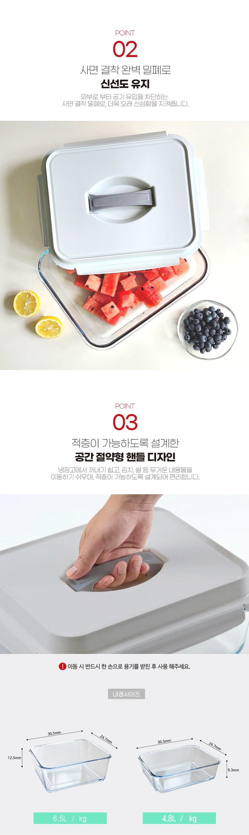 | 품명 및 모델명 | 유리 밀폐용기 : EHLH-G48,EHLH-G65 | 재질 | 폴리프로필렌, 고무제(실리콘고무), 무착색유리제(오븐용) |
