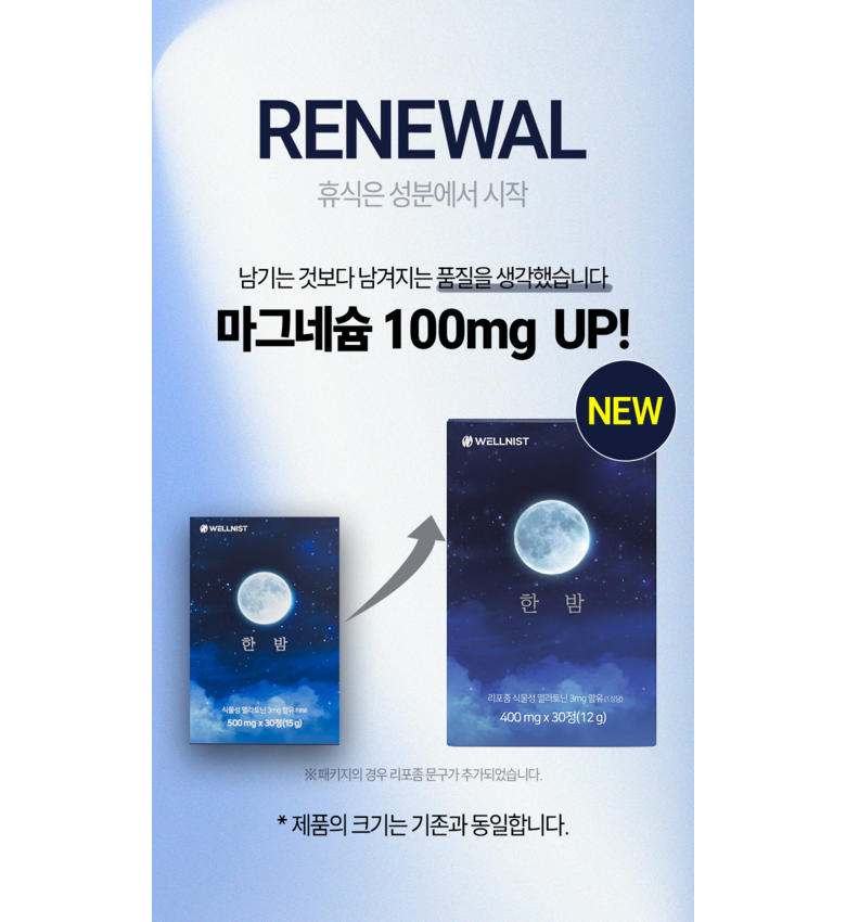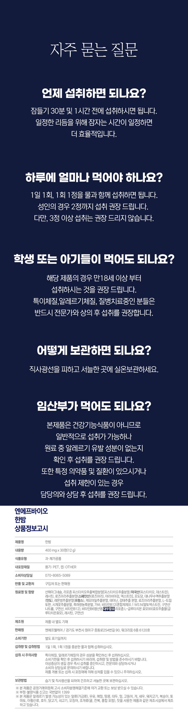 | 제품명 | 한밤 멜라토닌 | 식품의 유형 | 기타 가공식품(멜라토닌) |