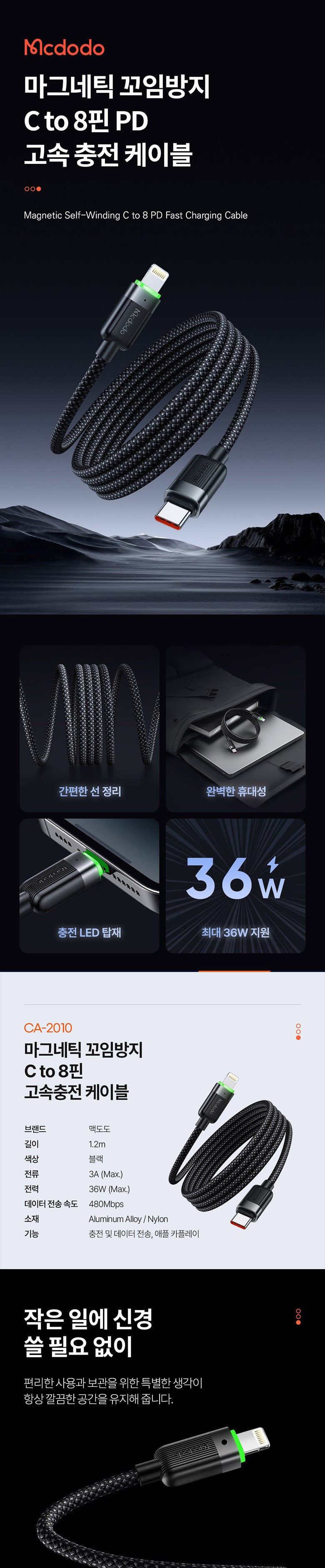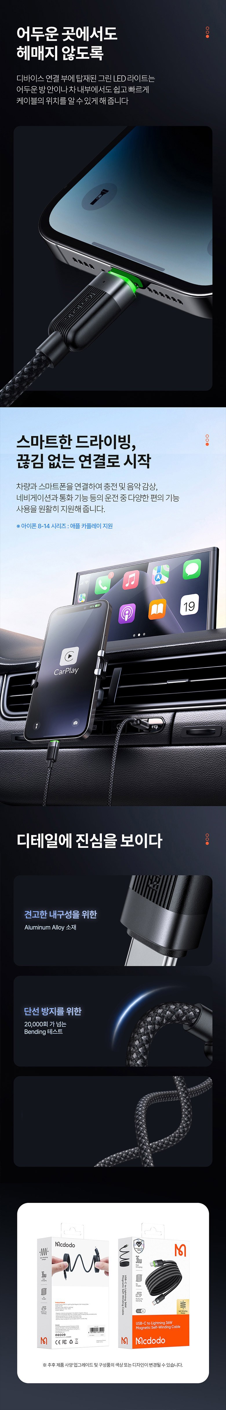 | 품명 및 모델명 | 맥도도 마그네틱 꼬임방지 C to 8핀 PD 고속충전 케이블 | 인증/허가 사항 | 해당없음 |