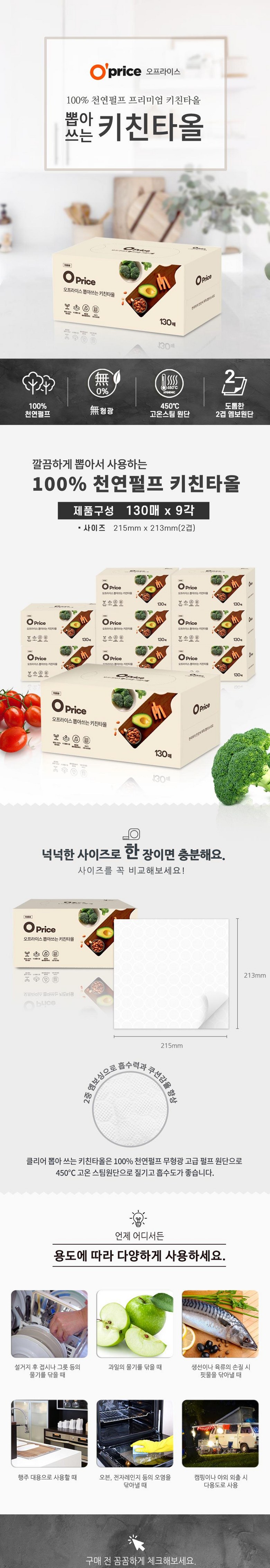 오프라이스 뽑아쓰는 키친타올, 130매, 18개