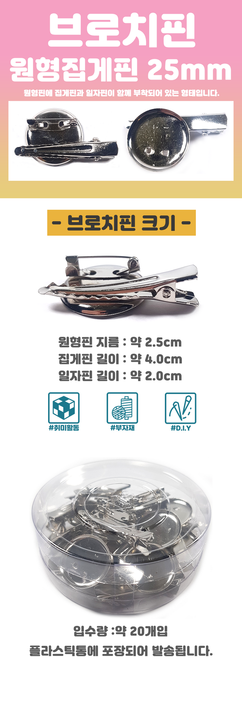 | 품명 및 모델명 | 브로치핀 원형집게핀 25mm 20개입 코사지핀 뱃지 만들기 재료 | 인증/허가 사항 | 해당사항없음 |