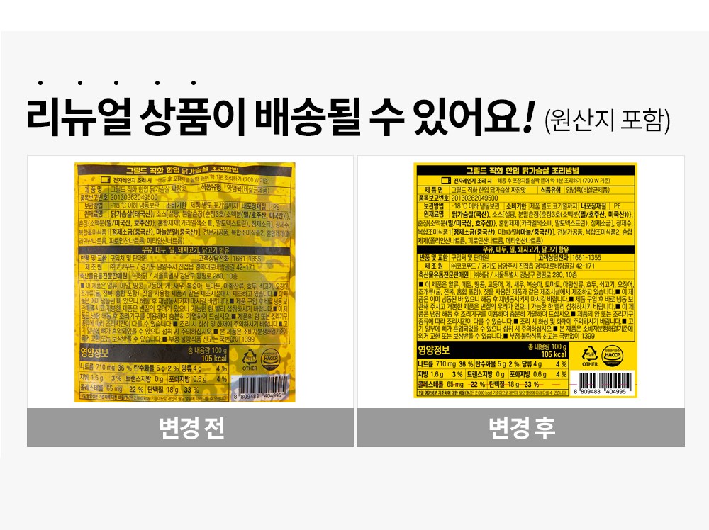 - 닭가슴살 종류: 생 닭가슴살