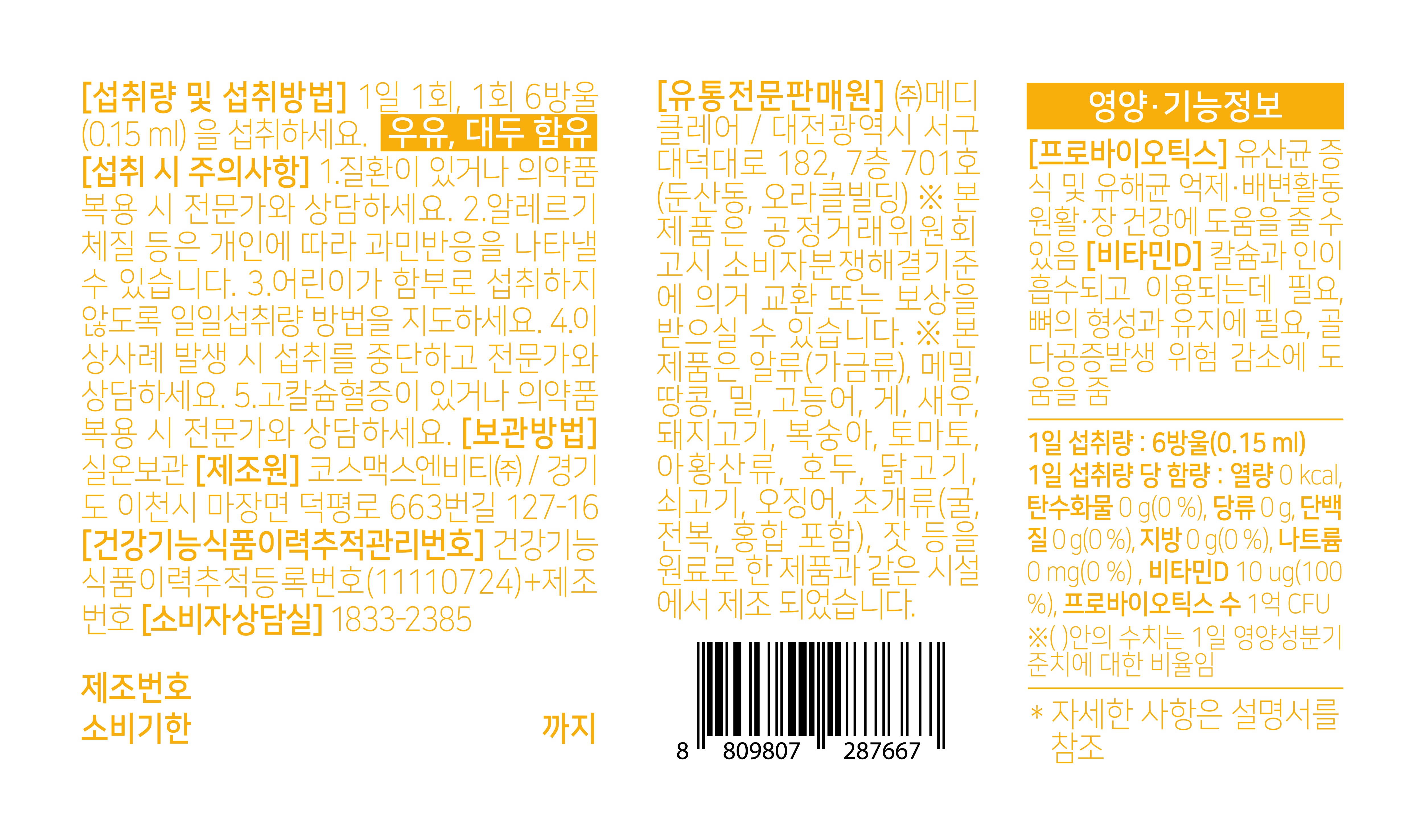 | 제품명 | 아기 유산균 비타민D 드롭 | 제조업소의 명칭과 소재지 | 컨텐츠 참조 |