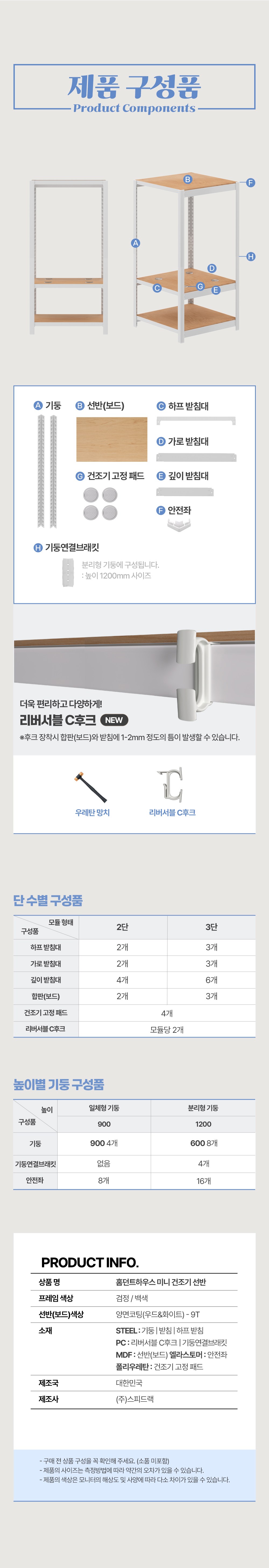 | 품명 | 스피드랙 홈던트하우스 무볼트 미니건조기 조립식 철제 선반 2단 600 x 400 x 900 mm, 화이트 | KC 인증정보 | 해당없음 |