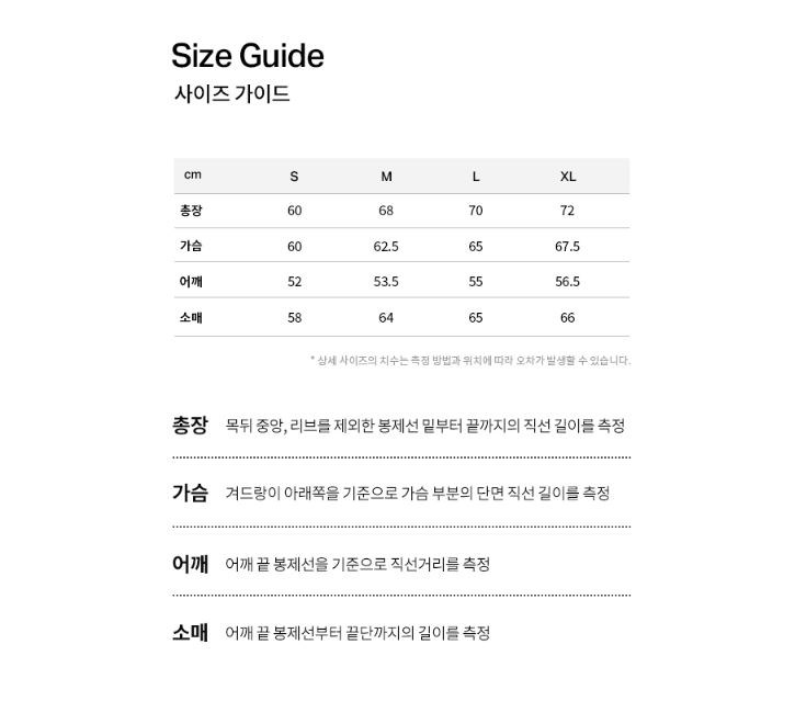 | 제조국 | 베트남 | 세탁방법 및 취급시 주의사항 | 미온수에 뒤집어서 손세탁 혹은 드라이크리닝 권장, 표백제 및 건조기 사용금지 |