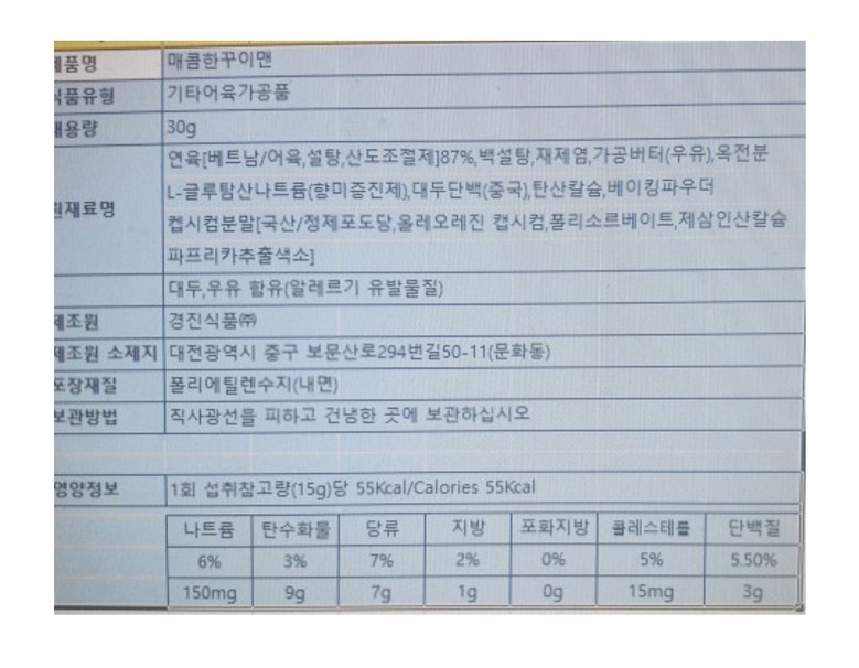 | 제품명 | 상품 상세페이지 참조 | 식품의 유형 | 상품 상세페이지 참조 |
