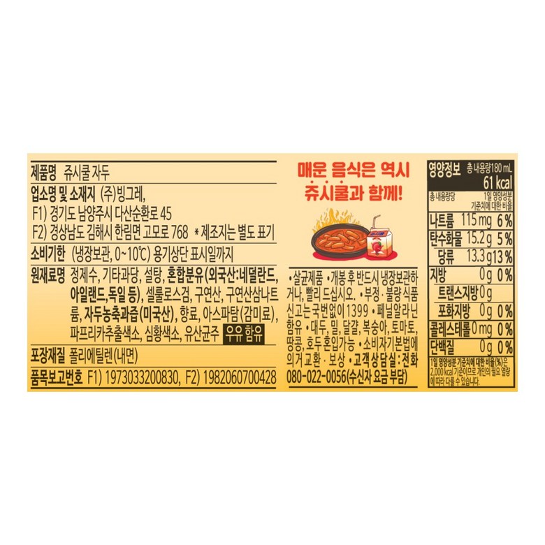| 제품명 | 상품 상세페이지 참조 | 식품의 유형 | 상품 상세페이지 참조 |