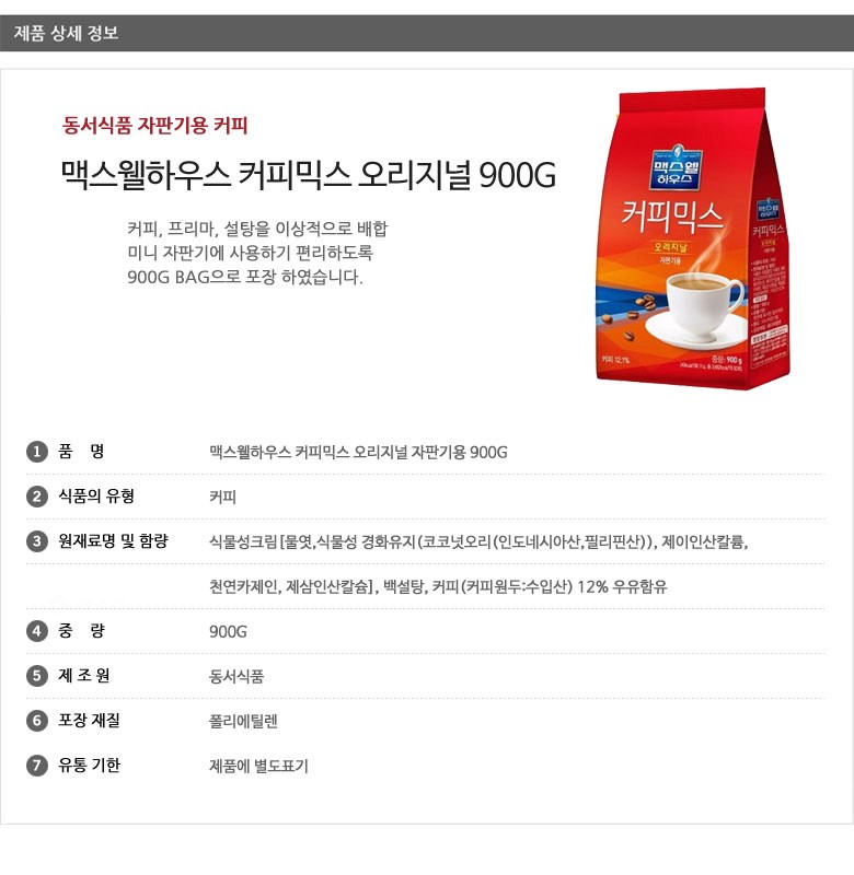| 생산자 및 소재지 | 상품 상세페이지 참조 | 제조연월일, 소비기한 또는 품질유지기한 | 상품 상세페이지 참조 |