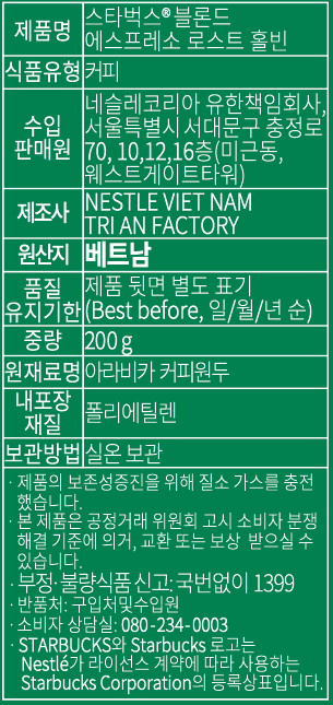 | 포장단위별 내용물의 용량(중량), 수량 | 200g *1개,1개 | 원재료명 및 함량 | 컨텐츠 참조 |