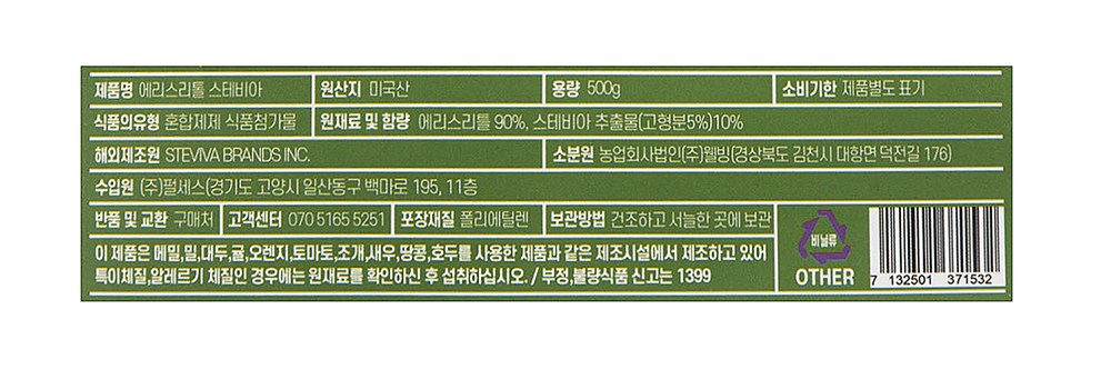 | 제품명 | 에리스리톨 위드 스테비아 | 식품의 유형 | 컨텐츠참조 |