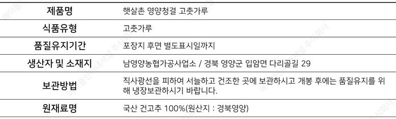 | 생산자 및 소재지 | 상품 상세페이지 참조 | 제조연월일, 소비기한 또는 품질유지기한 | 상품 상세페이지 참조 |