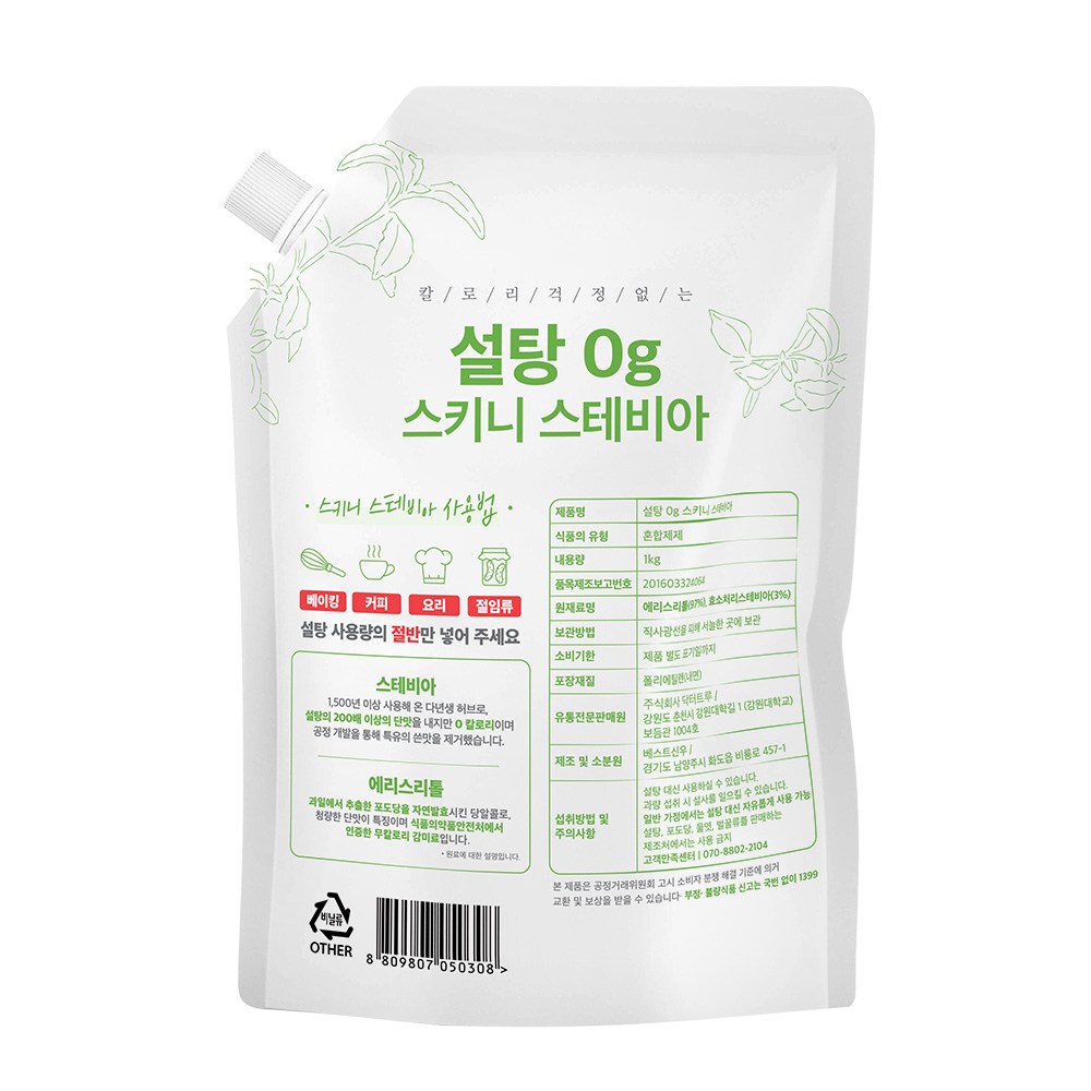 - 설탕/대체제 유형: 스테비아설탕