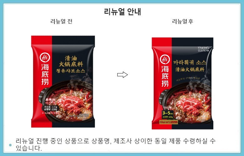 | 제품명 | 마라훠궈소스 | 식품의 유형 | 소스류 |