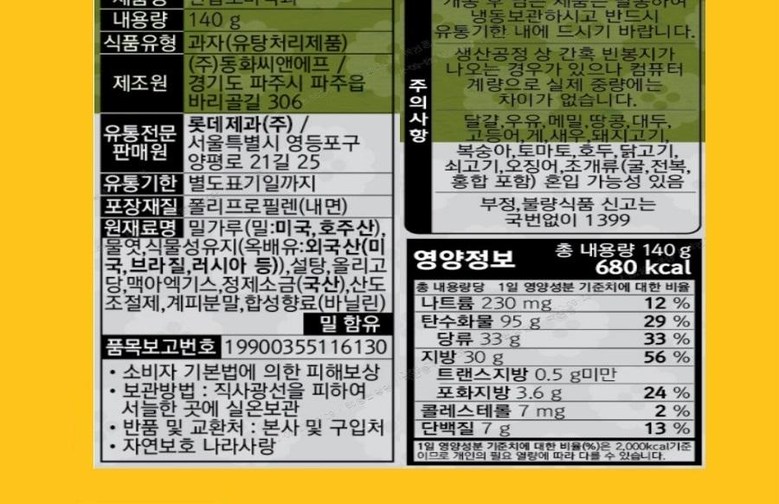 | 제조연월일, 소비기한 또는 품질유지기한 | 상품 상세페이지 참조 | 세부 품목군별 표시사항 | 상품 상세페이지 참조 |