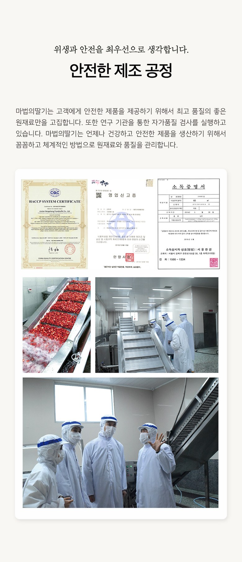 | 생산자 및 소재지 | 경기도 화성시 송산면 공룡로 163번길 69-9 | 제조연월일, 소비기한 또는 품질유지기한 | 제조연월일 : 제품 상단에 표기 |