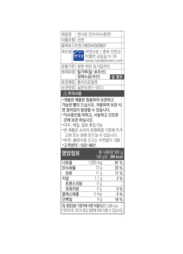 | 제품명 | 면사랑 잔치국수(중면) | 식품의 유형 | 컨텐츠 참조 |