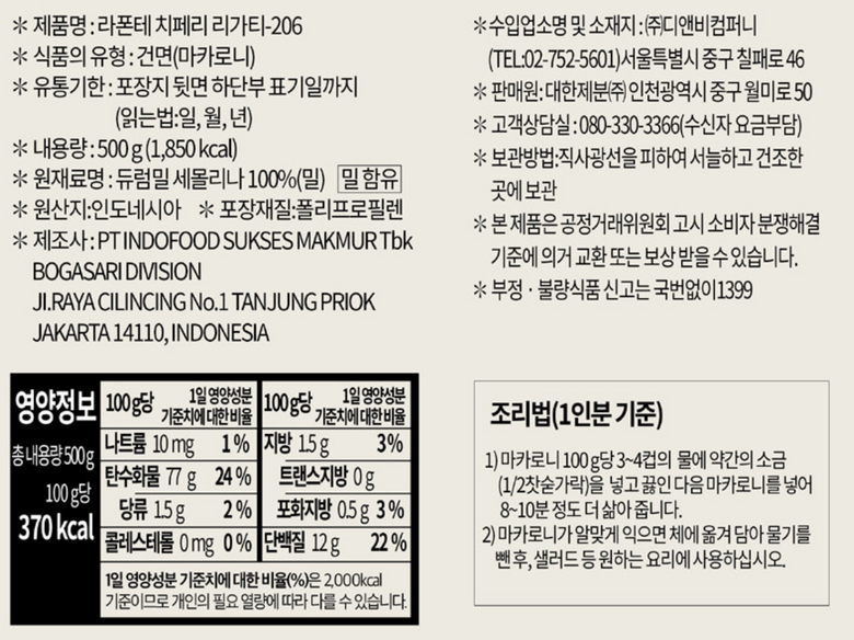 | 제품명 | 상품 상세페이지 참조 | 식품의 유형 | 상품 상세페이지 참조 |