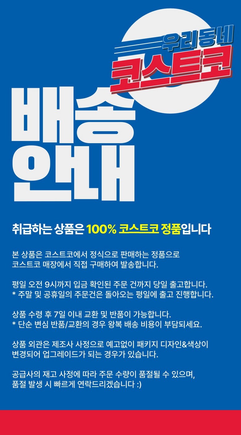 | 배송기간 | ㆍ도서산간 지역 등은 배송에 3-5일이 더 소요될 수 있습니다. - 천재지변, 물량 수급 변동 등 예외적인 사유 발생 시, 다소 지연될 수 있는 점 양해 부탁드립니다. | ||