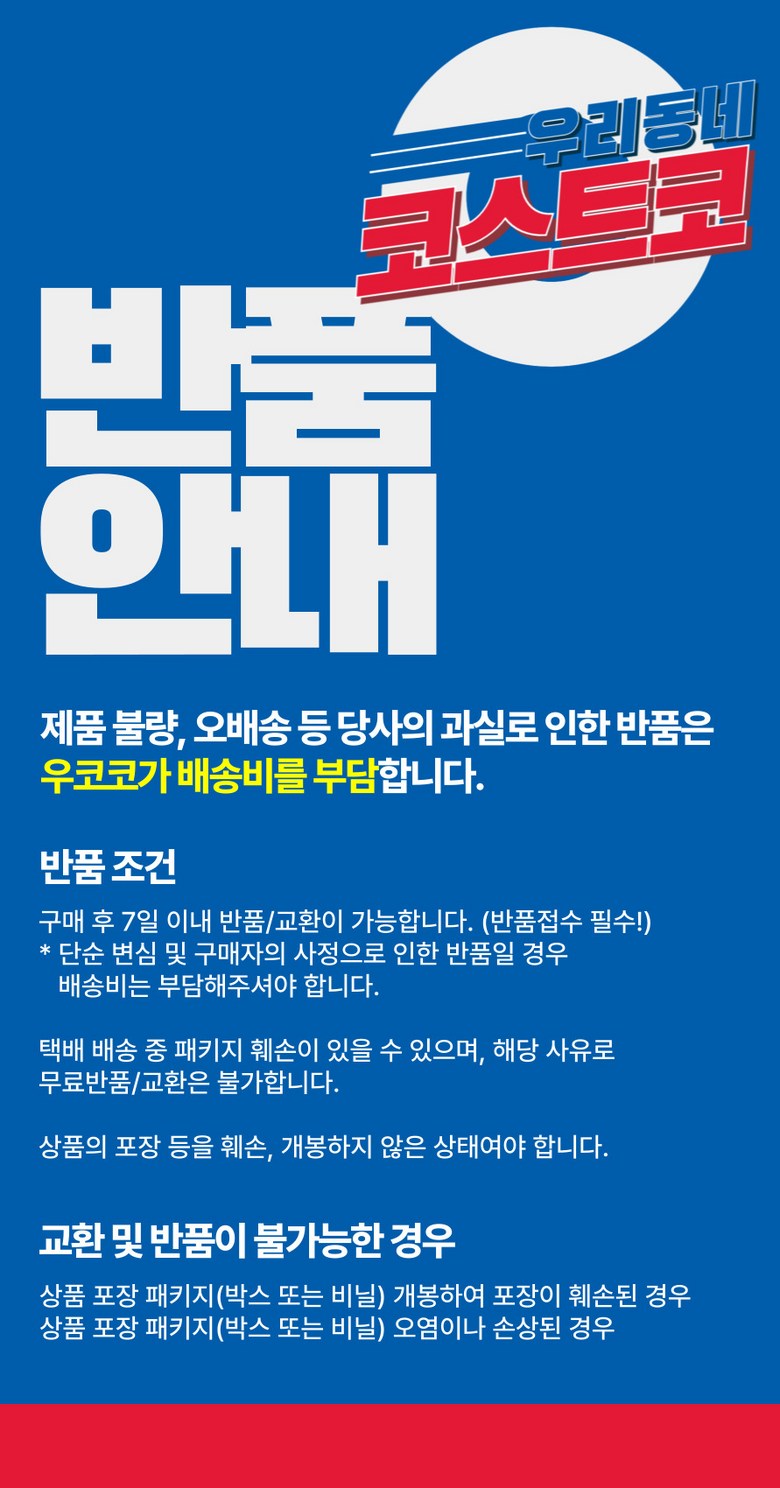 - ㆍ모니터 해상도의 차이로 인해 색상이나 이미지가 실제와 달라, 고객이 단순 변심으로 교환/반품을 무료로 요청하는 경우