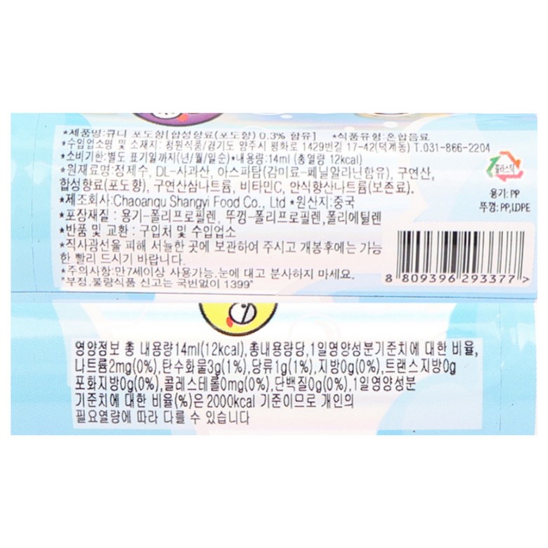 | 제품명 | 상품 상세페이지 참조 | 식품의 유형 | 상품 상세페이지 참조 |