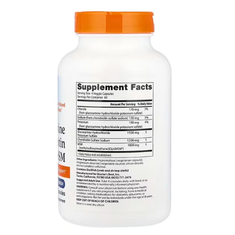 Doctors Best 닥터스 베스트 글루코사민 1500mg 콘드로이틴 1200mg OptiMSM 함유 240정, 240정, 1개
