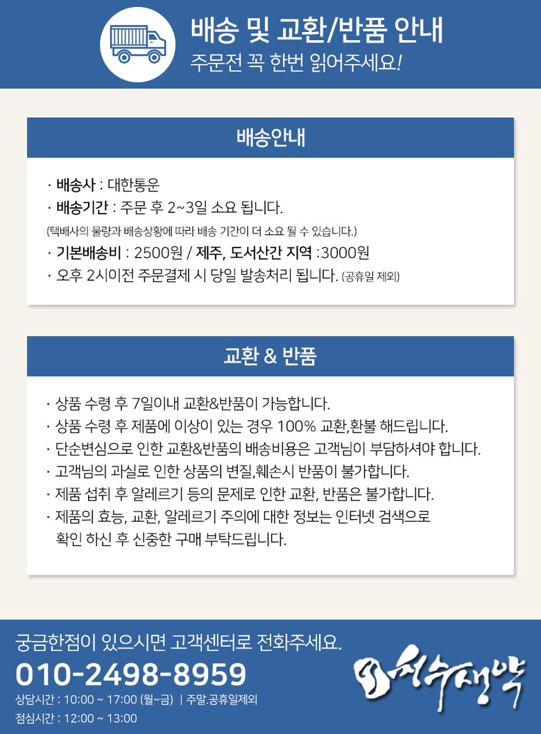 - ㆍ모니터 해상도의 차이로 인해 색상이나 이미지가 실제와 달라, 고객이 단순 변심으로 교환/반품을 무료로 요청하는 경우