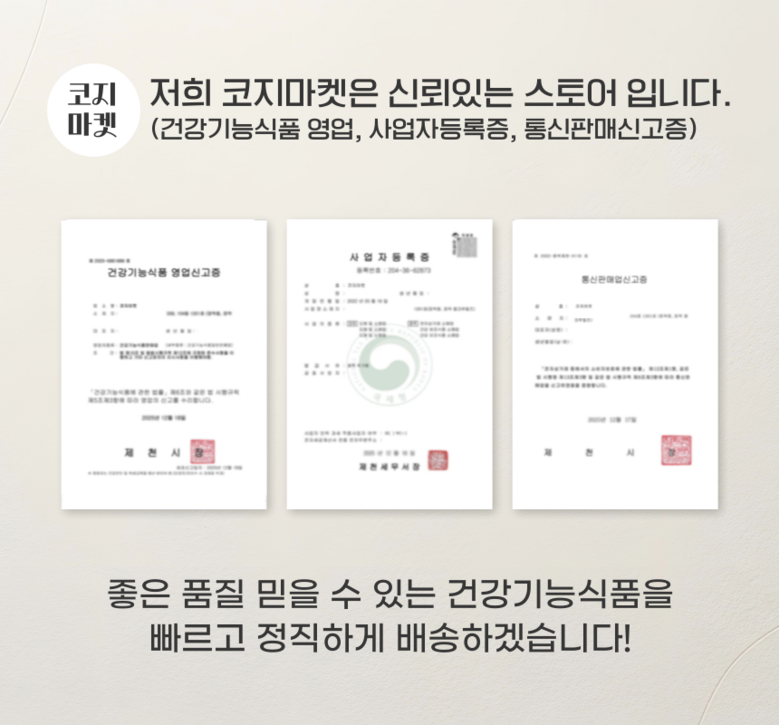 상호/대표자 | 코지마켓 / 정은희 | 사업장 소재지 | 충청북도 제천시 내제로 339 104동 1201호 |