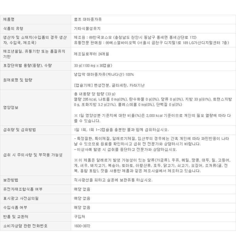 | 원재료명 및 함량 | 상품 상세페이지 참조 | 영양성분 | 상품 상세페이지 참조 |