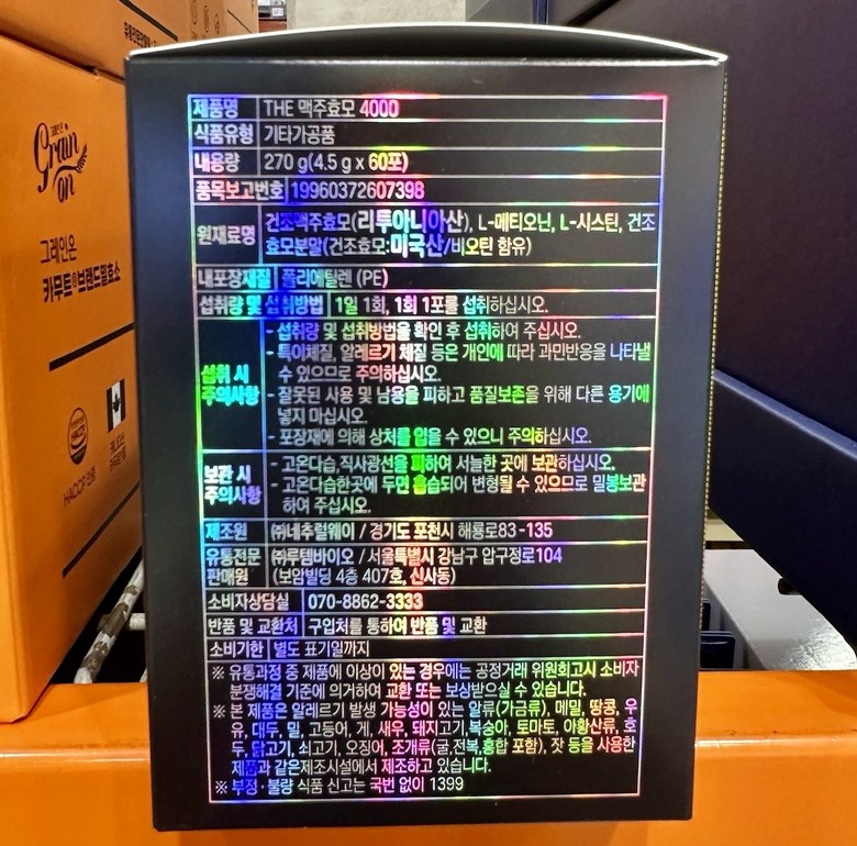 | 원료명 및 함량 | 상품 상세페이지 참조 | 영양정보 | 상품 상세페이지 참조 |
