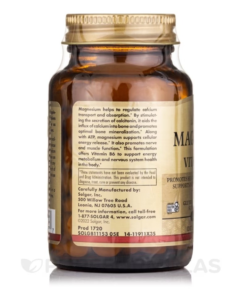 마그네슘이 함유된 성인 식이 보충제입니다. 비타민 B6를 함께 제공합니다.