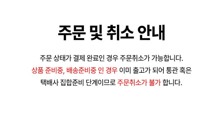 - ㆍ주문/제작 상품의 경우, 상품의 제작이 이미 진행된 경우