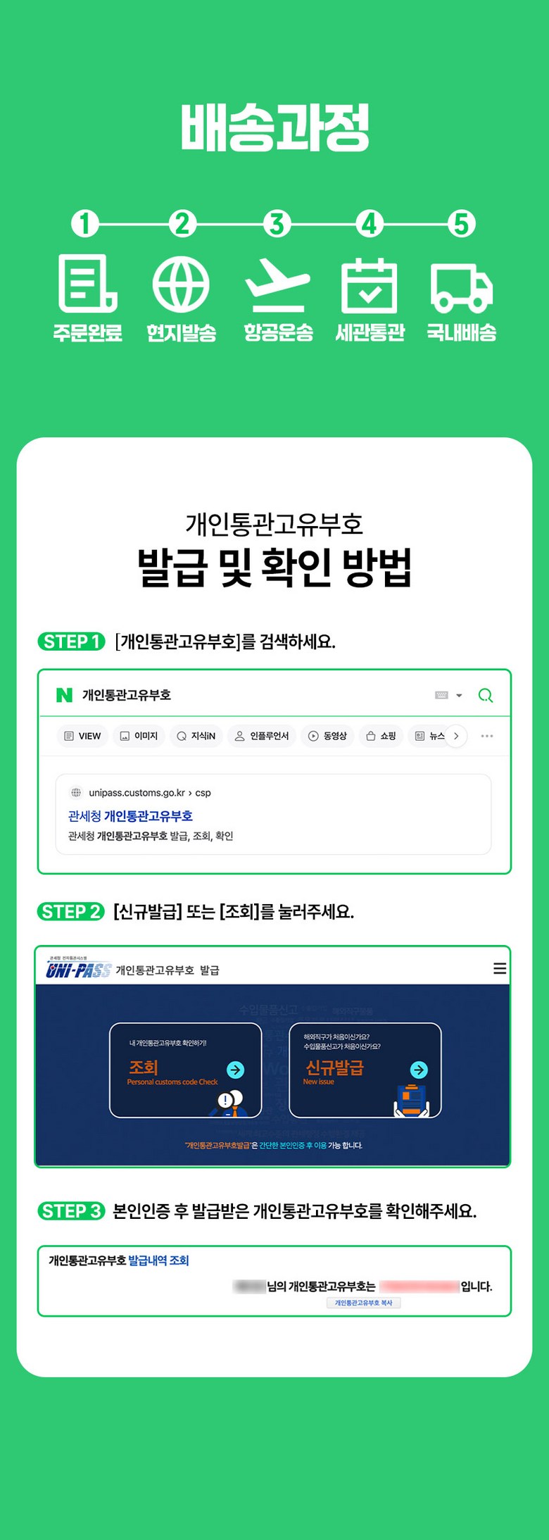 - 원활한 통관을 위해 개인통관고유부호가 필요합니다.