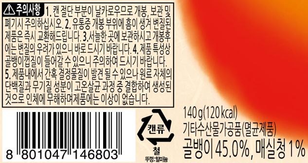 | 제품명 | 컨텐츠 참조 | 식품의 유형 | 기타수산물가공품 |